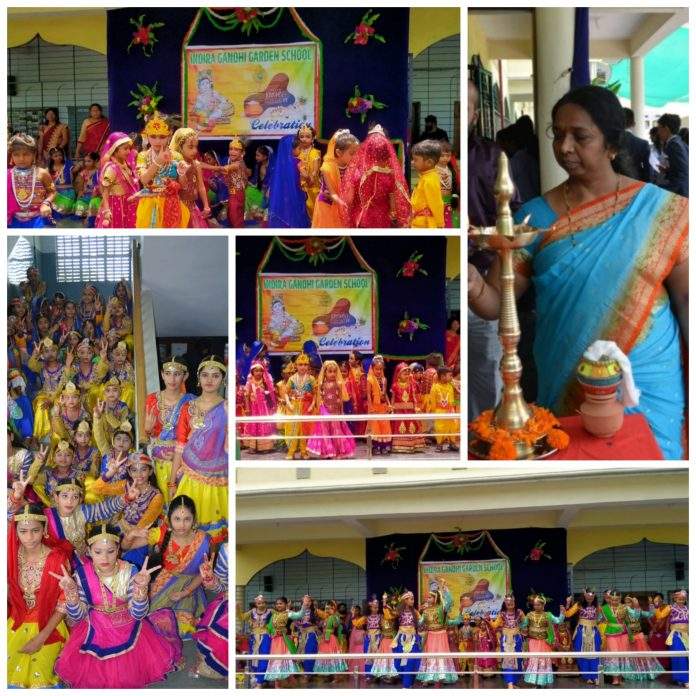 चंद्रपूर : द एज्युकेशन अँड कल्चरल सोसायटी संचलित इंदिरा गांधी गार्डन स्कूलमध्ये कृष्ण जन्माष्टमी मोठ्या थाटामाटात साजरी करण्यात आली. राधा आणि कृष्णाच्या वेषभुषा परिधान करून गोंडस चिमुकल्यांनी संपूर्ण उत्सवाला पारंपारिक स्पर्श दिला. लहान मुलांनी जन्माष्टमीच्या गाण्यांच्या तालावर जन्माष्टमीच्या गाण्यांवर नृत्य प्रस्तुत करून उपस्थितांचे मने जिंकली.