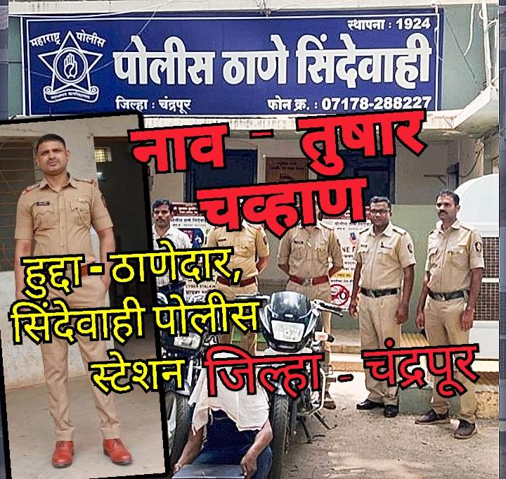 या साठी मोठा आर्थिक व्यवहार सुद्धा करण्यात आल्याचे विश्वसनीय वृत्त आहे? तुषार चव्हाण यांना कोठारी पोलीस स्टेशन वरून लगेच सिंदेवाही पोलीस स्टेशन चा चार्ज दिला गेला.त्यांची तत्कालीन पोलीस अधीक्षकाशी असलेली जवळीक त्यांना “सु-मधुर”संबंधात दिल्याने जिल्ह्यातील अनेक सहाय्यक पोलीस निरीक्षकांच्या “भुवया”उंचावून गेल्या होत्या!