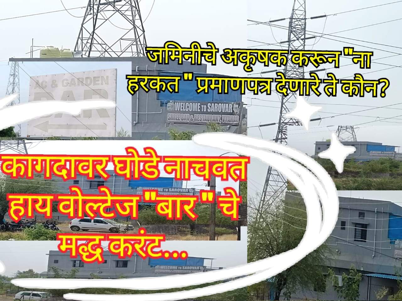 ज्या हाय वोल्टज इलेक्ट्रिक लाईन च्या खालती हा बार थाटण्यात आला आहे. त्या जागेचे अकृषक (N. A)करीत बांधकामा साठी MSEB तर्फे नाहरकत प्रमाणपत्र घ्यावे लागते? तेही प्रमाणपत्र या बांधकामसाठी नियमात बसत नसताना साध्या घराला ही बांधकामची परवानगी नाही मिळत तर या बांधकामाला परवानगी देण्यात कशी आली या बाबत आता थेट प्रश्न विचारना त्या अधिकाऱ्यांना करण्यात येत आहे.