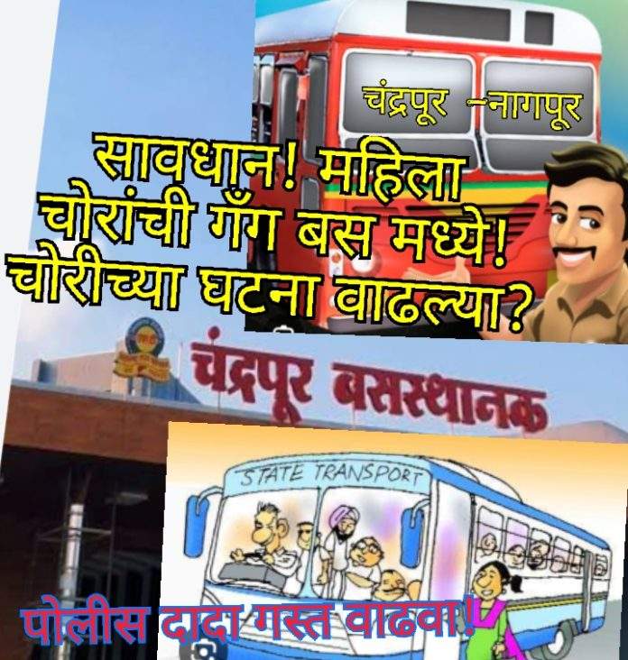 👉गर्दीचा फायदा घेत चंद्रपूर – नागपूर महाराष्ट्र राज्य परिवहन विभागाच्या चालणाऱ्या एस. टी. बसेस मध्ये चोरीचे प्रमाण वाढले आहे.