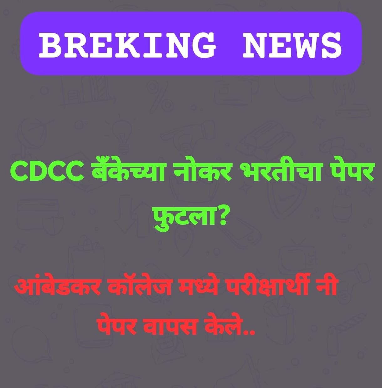 चंद्रपूर जिल्हा मध्यवर्ती सहकारीबँकेच्या (CDCC)नोकर भरती चा परीक्षेचा पेपर फुटल्याची विश्वसनीय मोठी बातमी येत आहे. चंद्रपूर येथील आंबेडकर कॉलेज येथे घेण्यात आलेल्या या परीक्षेत मोठा घोळ झाल्याच्या चर्चेला उधान आले आहे. या ठिकाणी पोहचलेल्या सर्व परीक्षार्थी नी हा पेपर न सोडवता याची तक्रार केली आहे. या ठिकाणी पूर्वीपासून ही नोकर भरती वादग्रस्त राहली आहे. करोडो रुपयाचा भ्रष्टाचार या नोकर भरतीत झाल्याचा ही आरोप करण्यात आला आहे.