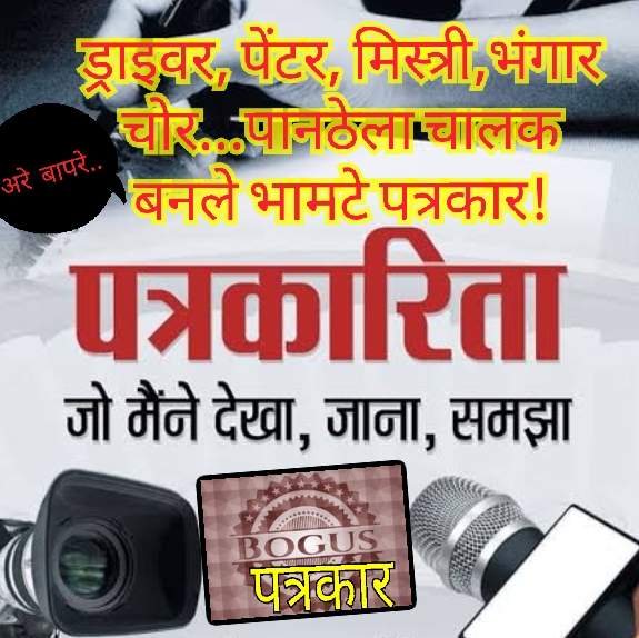 👉पत्रकारितेत न लिहिता येणाऱ्या घरकाम मिस्त्री, ड्राइवर, पेंटर,भंगार चोर, इलेक्ट्रिशियन, भंगार विकणारा अशा महारथी ची नवीन टीम सध्या पत्र कारीता क्षेत्रात उतरली असल्याने पत्रकारितेला धक्काचं बसलेला आहे.