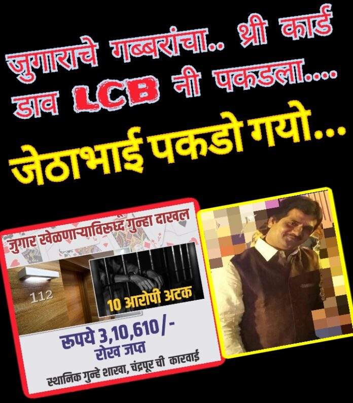 जुगाराचा डाव भडकला असताना अट्टल जुगाराच्या आहारी असलेल्या थ्री कार्ड वर पैशाचा डाव खेळणाऱ्या चंद्रपूर जिल्ह्यातील गब्बर व्यापाऱ्यांना स्थानिक गुन्हे शाखेने(LCB) शहरातील एका हॉटेल वर धाड टाकत काल रात्री अटक केली.