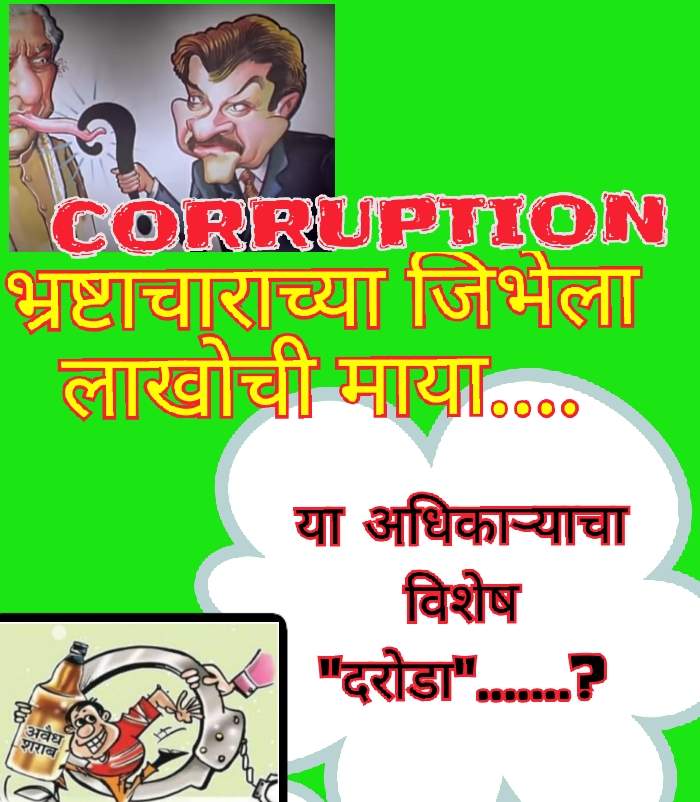 एक दोन नाही तर पूर्ण एका विभागाचा सटच भ्रष्टाचाराच्या रोगाने ग्रासलेला आहे.वरोरा मधील थोरा…, म्हस्क्यू…, भरारी चा टायगर बाम(वाघडू),चंद्रपूर चा लिचडू, कोलहू,राजुरा चा दरोडू, भिवडू, कापटू,आणि यांचे वसुली फंटर ची मोठी गँग सध्या चंद्रपूर जिल्ह्यात सक्रिय आहे. यांच्यामागे ऑपेरेशन युनिट वन आणि टू यांचा गोपनीय अहवाल ACB ला पाठवत आहे. लवकरच यांची भ्रष्टाचाराची कुंडली स्वाहा होणार आहे.
