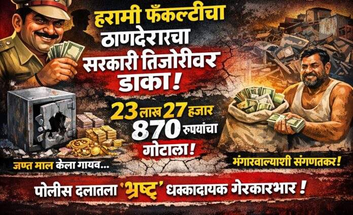 चंद्रपूर – (सुशांत घाटे)लोकशाहीचा चौथा स्तंभ जेव्हा लेखणी उचलतो, तेव्हा सिंहासने हलतात. आजची ही बातमी म्हणजे चंद्रपूर जिल्ह्याच्या पोलीस दलाला लागलेली ती वाळवी आहे, जी आतून संपूर्ण यंत्रणा पोखरत आहे. ज्या खाकीवर सामान्य माणसाचा विश्वास आहे, त्याच खाकीच्या आड बसून एका ‘हरामी फॅकल्टी’च्या ठाणेदाराने चक्क सरकारी तिजोरीवरच डाका टाकला आहे. २३ लाख २७ हजार ८७० रुपयांचा सरकारी माल, जो कायदेशीर प्रक्रियेत जप्त होता, तो एका भंगारवाल्याच्या दावणीला बांधून या ‘संधीसाधू’ अधिकाऱ्याने स्वतःची तिजोरी मालामाल केली आहे.